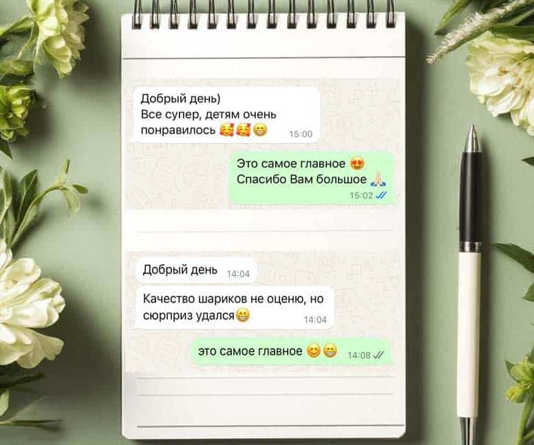 Главная цель для нас — ваше восхищение, поэтому мы создаём яркие и запоминающиеся события. 🎪 Наша команда профессионалов действует слаженно и гарантирует безупречное выполнение заказов, включая срочную доставку воздушных шаров. 🚗